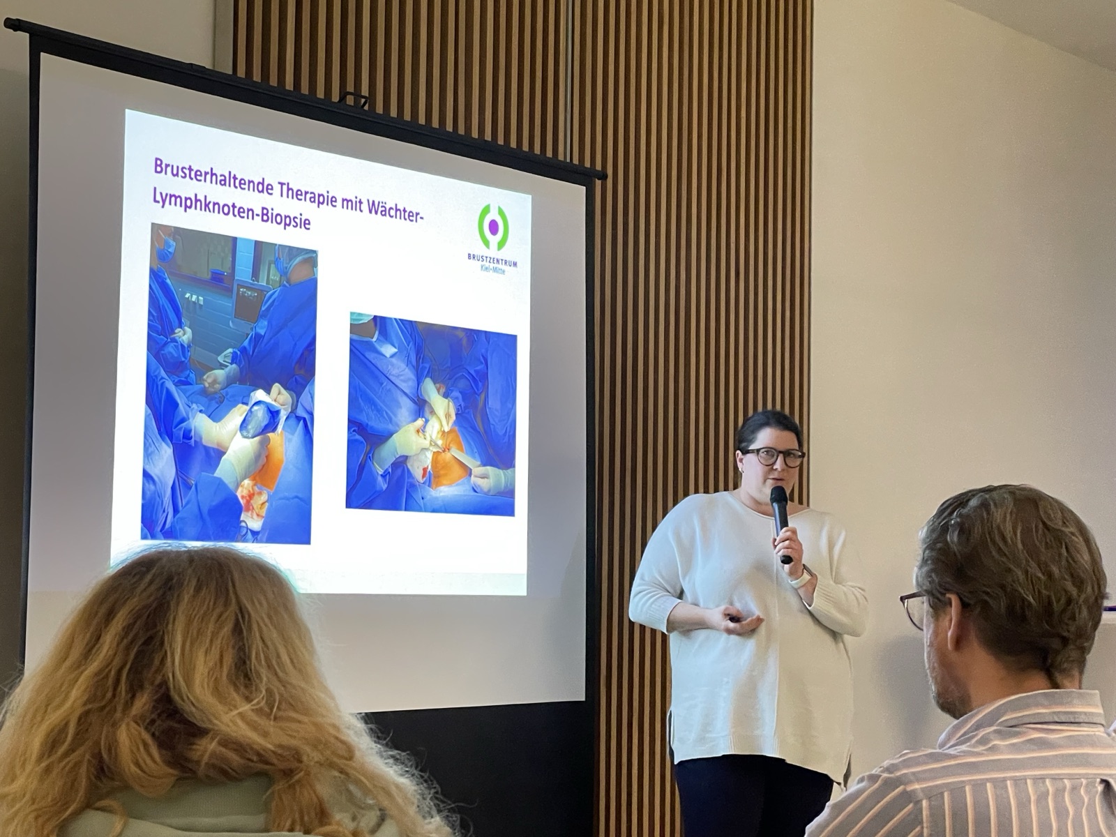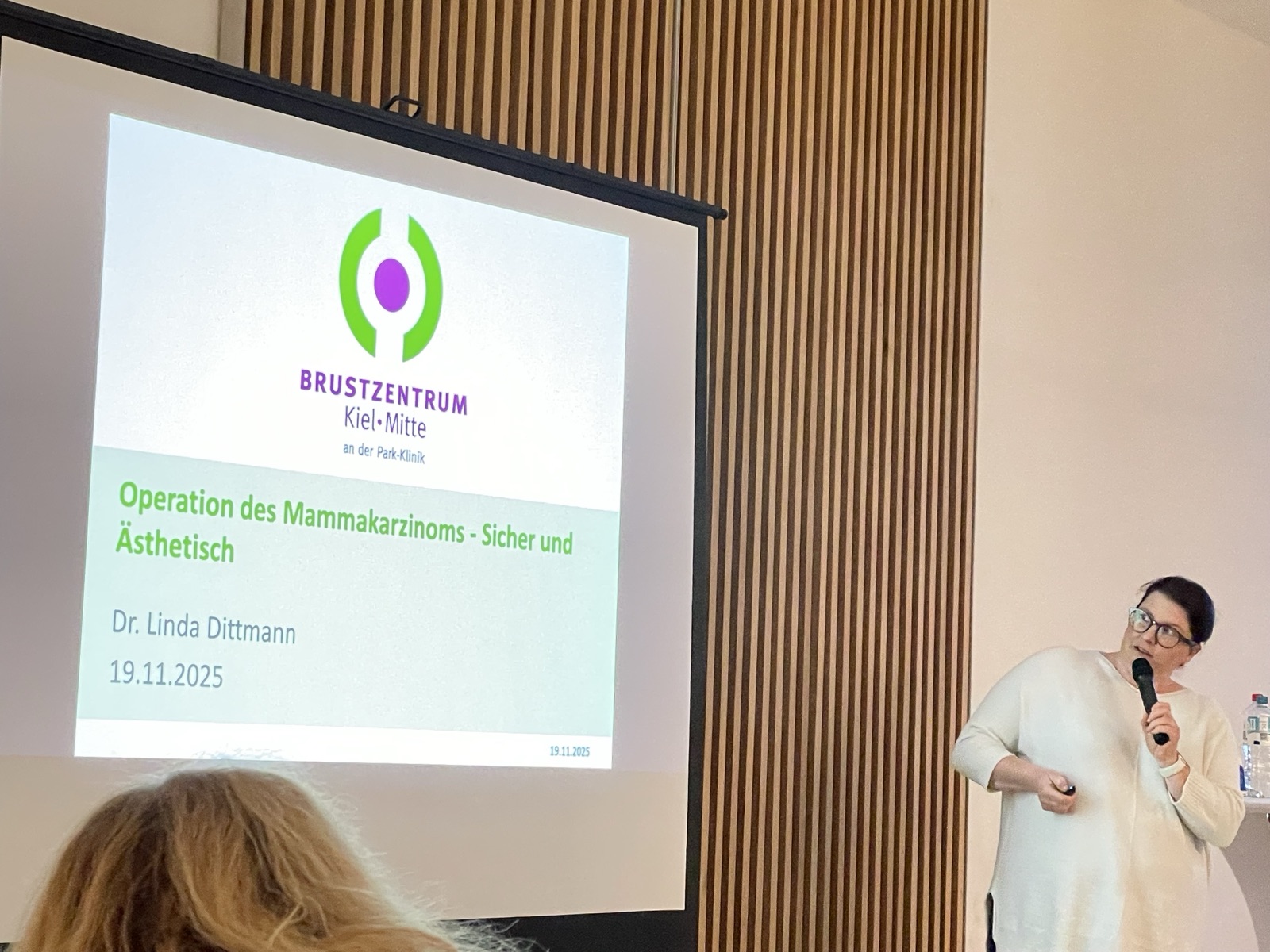 In fünf sehr kurzweiligen und anschaulichen Vorträgen wurde den Zuhörer:innen alles von der Früherkennung mittels Mammographiescreening über die Abklärung auffälliger Befunde bis hin zur Therapie erläutert. Unsere Brustoperateurin Dr. Linda Dittmann vom Brustzentrum Kiel-Mitte an der Park-Klinik, die an der Kieler Park-Klinik Brustkrebspatientinnen operiert, hat sehr feinfühlig die verschiedenen Operationsmöglichkeiten aufgezeigt und dabei besonders herausgearbeitet, dass eine solche Operation sowohl sicher, also auch gleichzeitig ästhetisch sein kann. Dadurch bleibt die Lebensqualität der Patientin erhalten. Dr. Kirsten Schütze, die medikamentöse Tumortherapie in Flensburg und Kiel anbietet, hat den Anwesenden extrem hilfreiche und praxisnahe Tipps an die Hand gegeben, wie mögliche Nebenwirkungen einer Tumortherapie behandelt werden können. Ein besonderes Augenmerk hat sie dabei auf die alternativmedizinischen Methoden gelegt.